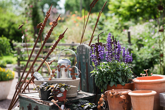 Trädgården en viktig del av Handen Hus och Kinnekulle. Vi säljer på våren gammaldags perenner växter. Under hela säsongen har vi ett utvalt sortiment av krukor, växtstöd i järn att utsmycka trädgården med.